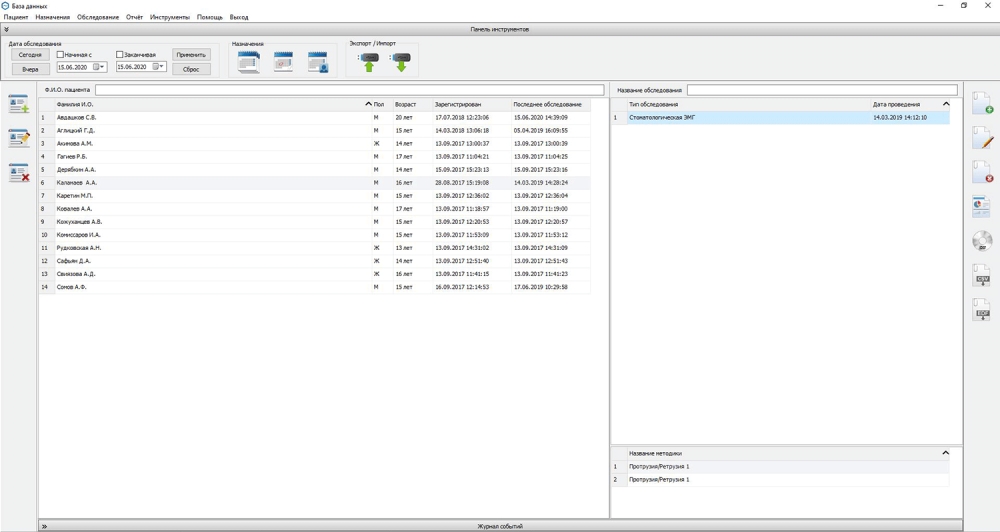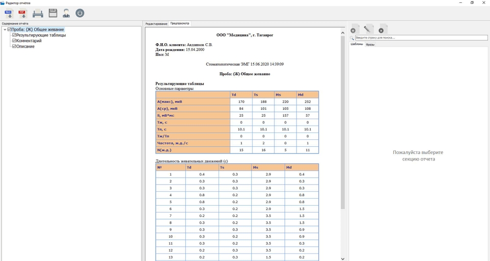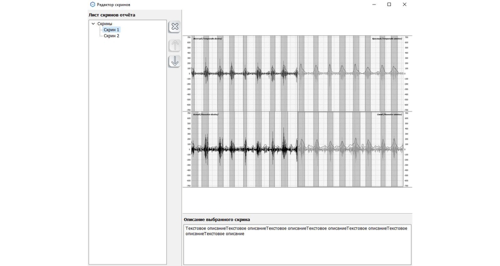 текстовых пометок для каждой записи, функция «Пауза» и монитор среднего уровня ЭМГ сигнала.