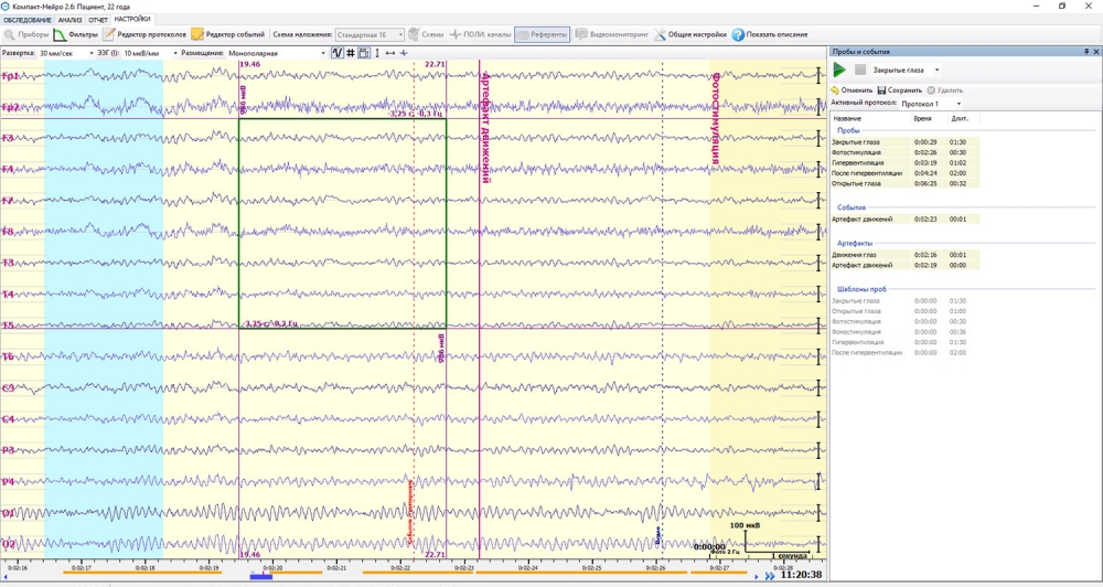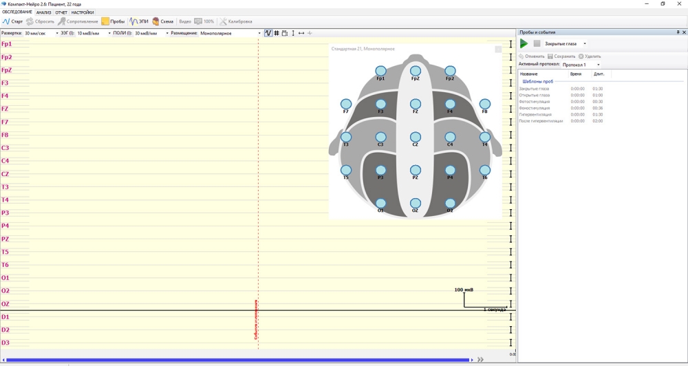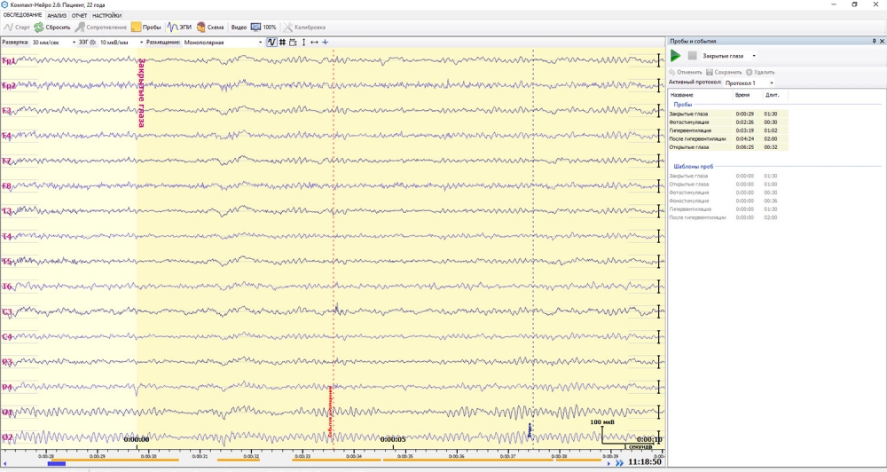 3. Регистрация ЭЭГ по заранее сформированным протоколам и возможность создания пользовательских протоколов.